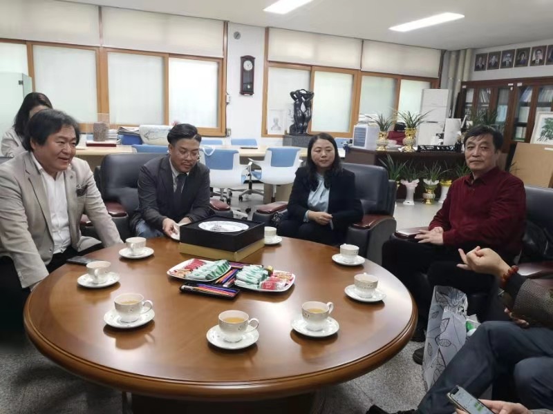 的交流活动会为两国文化艺术的发展打下坚实的基础。学术交流期间,釜山大学全虎焕校长特别在办公室接见了此次赴韩的各位教授,对两校之间的艺术交流与合作提出了新的期望,并前往展厅和艺术家进行了面对面的深入交流。