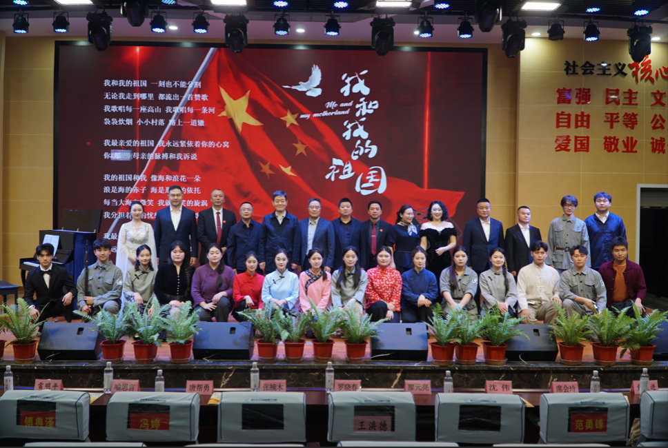 演出过程中 , 喻思言 、苏勤和黄慧三位老师还结合声乐艺术特点与作品历史背景进行专业导赏 , 引导学生深入理解音乐内涵,提升艺术鉴赏力。最后,全体与会人员共同高唱《我和我的祖国》,在激昂旋律中抒发对祖国的深情祝福 ,将现场氛围推向高潮。